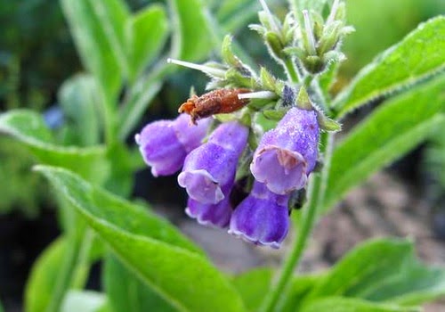 Description: Comfrey is a perennial plant common in moist meadows and other moist places in the U.S. and Europe.