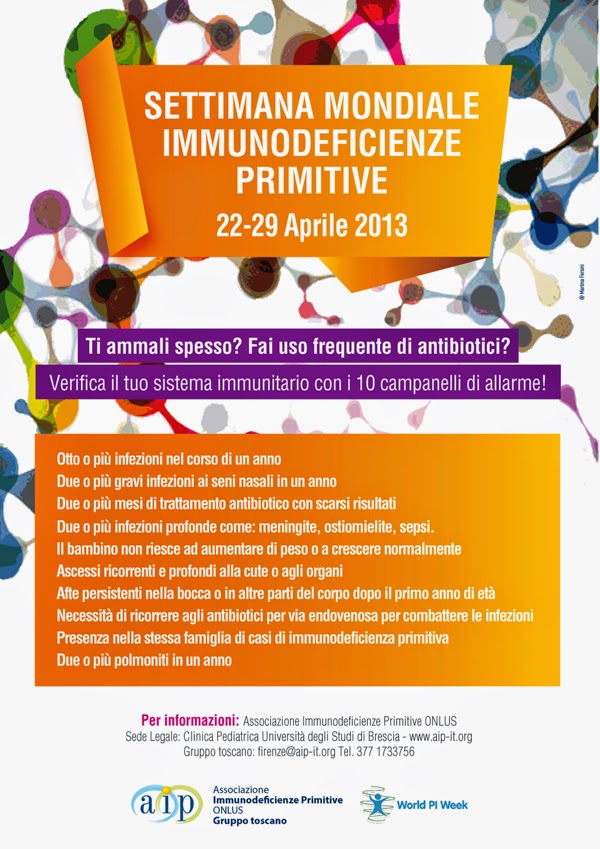 Proprio per aumentare la conoscenza e la comprensione di queste patologie, dal 22 al 29 aprile saranno promossi in tutta Italia eventi per diffondere materiale informativo. In Italia, l’Associazione Immunodeficienze Primitive (AIP) Onlus organizza un evento, in due giornate distinte, in collaborazione con i medici e le strutture sanitarie della Regione Friuli Venezia Giulia (vedere approfondimento).
